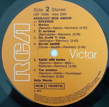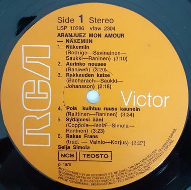 Visuaalisesti häiritseviä pinta- ja neulanjälkiä, lähinnä B-puolella. Soi kuitenkin varsin mainiosti, vain satunnaisilla pikkurutinoilla ryyditettynä. Matriisinumerot (painettu): VFAW 2304 / VFAW 2305.