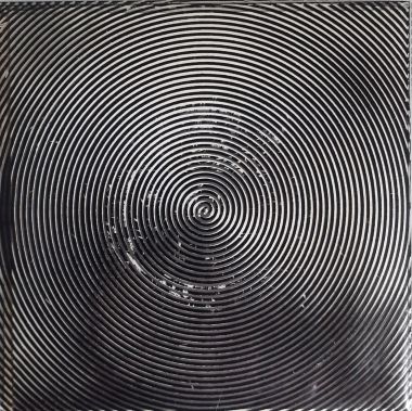 Black and white spiral picture sleeve, no top and bottom seam. Housed in a plastic 'spiral gimmick' outer sleeve.