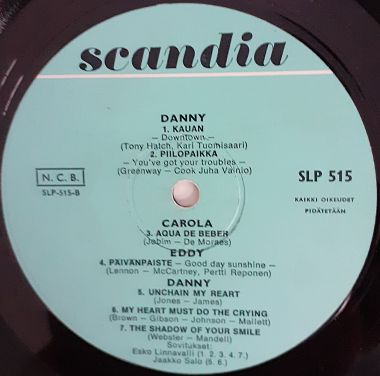 Jonkin verran hiusnaarmuja ja kevyitä pinta- / neulanjälkiä, ei mitään vakavaa. Soi mainiosti kera satunnaisten pikkurutinoiden. Matriisinumerot (painettu): SLP 499 A / SLP 499 B.Mukana vajaakuntoinen originaali Scandian sisäpussi.
