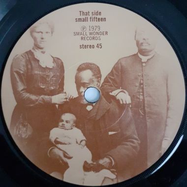 | Light brown labels with dark brown print, big Small Wonder Records logo on side A, an ancient family portrait on side B. Matrix numbers and stampers (etched): SMALL 15 A-1 A SA / SMALL 15 B-1 I |  | Semi-glossy flipback picture sleeve. Very light partial ringwear on back. Some wear and light creases along the edges. A bit worn / creased corners. |