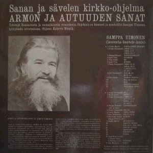 | Laatokan Karjalassa, Sortavalan maalaiskunnassa vuonna 1927 syntynyt tunnettu ja suuresti arvostettu suomalainen kanteletaiteilija, kansanmusiikin esittäjä ja karjalaisen kulttuurin / perinteen sanansaattaja. Uimosen omakustanteena julkaistu LP-levy yläotsikolla "Sanan ja sävelen kirkko-ohjelma". Sisältää tekstejä Raamatusta ja suomalaisesta runoudesta. Ohjelman on koostanut Uimonen (lausunta-kantele-laulu) työryhmän avustamana. Varsin harvinainen!