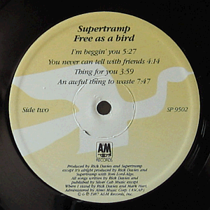 | Light blue and white (side A) / yellow and white (side B) picture labels. Small boxed black A&M picture logo below the centre hole. |  | Glossy single cover, still in shrink (> but opened). Circular white and black company sticker on front. |