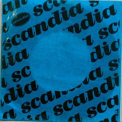 | Valkoinen ja vaalean turkoosi etiketti. Pieni musta Scandia-logo vasemmalla, valkoisen ovaalin sisällä. |  | Levy-yhtiön muovinen pussi. |