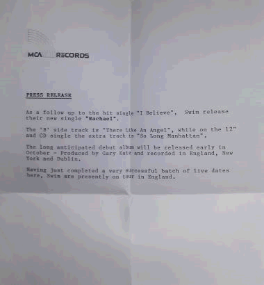 An Irish pop-rock band, formed in the late 1980s in Dublin. Their 2nd single, I should think.