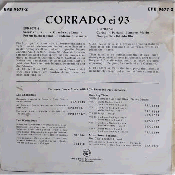 | An internationally renowned Italian pop band, popular especially in Germany, Belgium, Holland, France and Switzerland. Volume 2 (> sides 3 & 4) of a 'double EP' issue (> two EPs with the same picture cover) of 1959 singles: "Carina" /"Parlami d'amore, Mariu" // "Non partir" / "Privido Blu". Mono.