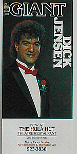 | Matrix numbers: GRS-1980-A / -B. There's also 'JT-95' engraved on both sides. |  | "The giant Dick Jensen now at The Hula Hut" insert enclosed. |