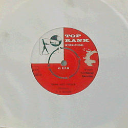 | Red and white (> 1/4 > top > left) labels. Black & white Top Rank (International) 'man hitting the gong' picture logo on top. Sticker tears on each side. |  | The picture sleeve is missing. |