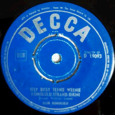 Glossy dark blue labels, curved silver 'open' Decca logo at the top. Some (> very little) writing on side A. Released in Finland without a picture sleeve.