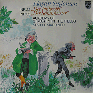 Joseph Haydn's "Symphony in E-flat major, Hob. I:22 - The Philosopher" and "Symphony in E-flat major, Hob. I:55 - The Schoolmaster". Performed by the Academy of St. Martin-in-the-Fields orchestra, conducted by Neville Marriner.
