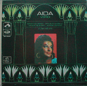 A well-respected version of Verdi's "Aida". German stereo issue with English (SAN 189/91) and German (SMA 91 653/55) catalogue numbers.