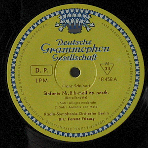 | Schubert's "Symphony No. 8 in B major (The Unfinished)" and Brahms' "Variations on a Theme by Haydn, Op. 56a", performed by Radio-Symphony-Orchester Berlin conducted by Ferenc Friscay. Mono.