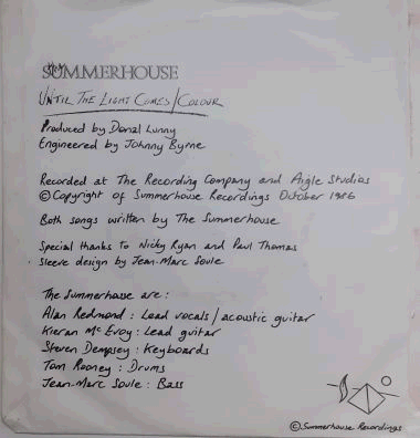 | White labels with red print. Red Summerhouse picture logo at the top. |  | Glossy picture sleeve. A bit creased on each side, especially along the edges. Bent / creased corners. I should think that the picture sleeve was made (> cut and clued together) by the band... |