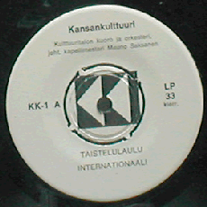 Kuusi poliittisen laulumusiikin vakaumuksellista maamerkkiä: "Taistelulaulu" / "Internationaali" // "Sä lippu puhdas punainen" / "Varsavjanka" / "Barrikadimarssi" / "Köyhälistön laulu". Helsingin Kulttuuritalon kuoroa ja orkesteria johtaa Mauno Saksanen. Seiskatuumainen LP-levy, ensimmäinen painos uskoakseni.