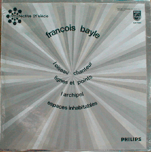 | A highly regarded French composer of electro-acoustic music, born in 1932 in Toamasina, Madagascar. Four compositions by Bayle: L'oiseau chanteur" (1963), "Lignes et points" (1966), "L'archipel" (1963-1967) and "Espaces inhabitables" (1967). Recorded in the legendary GRM (Groupe de Recherches Musicales) studios with the help of Quatuor Parrenin. A rare album in the "Prospective 21 Siecle" series. 1st pressing, I should think.