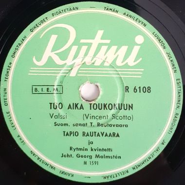 Vihreä etiketti Valkoisella Rytmi-logolla ja mustalla präntillä. Matriisinumerot: M 1590 / M 1591.