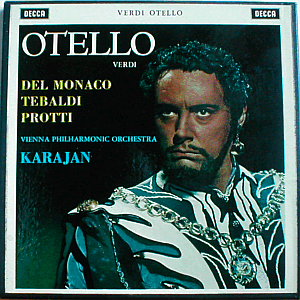 | Giuseppe Verdi's opera "Otello", sung by Mario del Monaco, Renata Tebaldi, Aldo Protti, Fernando Corena, Nello Romanato, Tom Krause, Ana Raquel Satre, Athos Cesarini, Libero Arbace, Vienna Opera Chorus and Vienna Grossstadtkinderchor, with Vienna Philharmonic Orchestra, conducted by Herbert von Karajan. Late 1960s stereo issue.