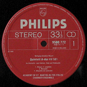 Mozart's "Quintet in A, K. 581", "Quintet in E flat, K 407" and "Quartet in F, K. 370" performed by the Academy of St. Martin-in-the-Fields' Chamber Ensemble featuring Anthony Pay (clarinet), Timothy Brown (horn) and Neil Black (oboe) with Iona Brown & Malcolm Latchem (violins), Stephen Shingles & Anthony Jenkins (violas) and Denis Vigay (cello).