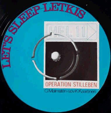 Vaaleansininen etiketti, jossa tekstit Let's Sleep-Letkis, HEL 11 ja Operation Stilleben.Päältä avautuvat kiiltäväpintaiset kuvakannet. Takana ruotsinkielinen johdatus asiaan. Kevyttä kulumaa reunoissa.