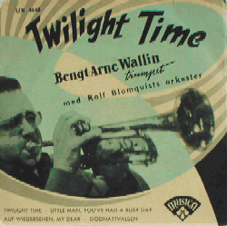 | An acclaimed Swedish composer, arranger and trumpet player, born in 1926 in Linköping. 4-track instrumental easy listening EP, consisting of "Twilight Time", "Litle Man, You've Had a Busy Day", "Auf Wiedersehen, My Dear" and "Godnattvalsen". With Rolf Blomqvist's Orchestra.
