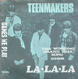 | White labels with light green horizontal "diamond" illustrations in the middle. Curved black Triola logo above the centre hole. |  | Picture sleeve. 3 cm edge tear on front (> top > right), restored with glue. Light yellowing on back. Very light corner wear. |