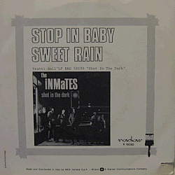 Italian only picture sleeve. Light dirt stains and surface wear on each side. Cut-out saw mark with a small tear. Side A is titled "Stop in Baby" on each side.