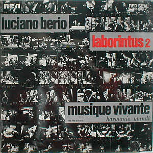 | Luciano Berio's "Laborintus 2", performed by Emsemble Musique Vivante, featuring Christiane Legrand, Janette Baucomont and Claudine Meunier (> all three from Les Swingle Singers) on vocals, and Edoardo Sanguineti as the speaker. Conducted by Berio himself. UK issue of Harmonia Mundi HM 764 (France 1970).