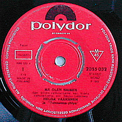 | Punainen etiketti. Ylhäällä musta ja valkoinen Polydorin kuvalogo. B-puolella kevyitä likajälkiä. |  | |