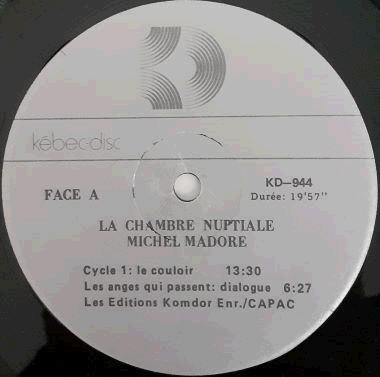 An acclaimed French-Canadian painter and sculptor, originally a fine musician and composer, born in 1949 in Montreal. A conceptual work tied in with visual art, often compared with early Tangerine Dream albums. All instruments (mainly keyboards) played by Michel Madore himself. Released in France as Egg 910.007. His 2nd album, recorded in 1975-1978.