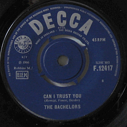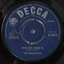 | A popular Irish pop / pop-rock band, formed in 1957 in Dublin as The Harmonichords, changed their name to The Bachelors in 1960. Rare Danish (> UK vinyl) picture sleeve issue of their 16th or so single, released in June 1966.