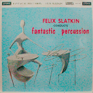 The 1st pop album Felix Slatkin ever conducted. Eleven percussionists play some 100 instruments of more than 35 types thar make up the family of percussion instruments. Featuring Shelly Manne, William Kraft and Hal Reeves. Excellent stereo pressing.