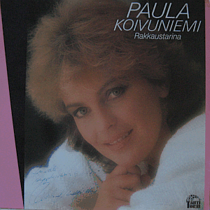 Kotimaisten naislaulajien ylintä aatelia, syntynyt 1947 Seinäjoella. Omistuskirjoituksella varustettu yksilö Koivuniemen keskimäärin 9. pitkäsoitosta.