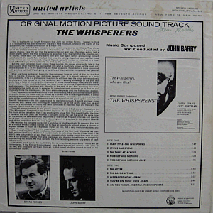 A renowned English composer and conductor of film music, born John Barry Prendergast in 1933 in York, Yorkshire. Original Motion Picture Soundtrack for "The Whisperers", composed and conducted by John Barry. US mono issue of United Artists (S)ULP 1168 (England 1967).