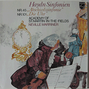 Joseph Haydn's "Symphony in F-sharp minor, Hob. I:45 - Farewell Symphony" and "Symphony in D major, Hob. I:101 - The Clock". Performed by the Academy of St. Martin-in-the-Fields orchestra, conducted by Neville Marriner.