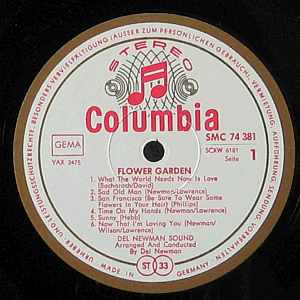 A renowned English arranger and conductor, born Derrick Martin Morrow in London. As Del Newman Sound. German issue of Columbia SCX 6181.