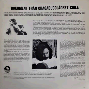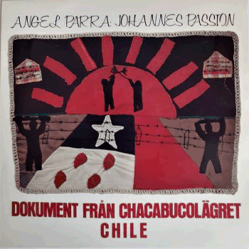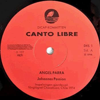 | A renowned Chilean singer and songwriter, born Luis Angel Cereceda Parra in 1943 in Valparaiso, became an important figure for the Nueva Cancion movement after Pinochet's coup d'etat in 1973. Son of Violeta Parra, brother of Isabel Parra. Recorded live on a cassette in prison camp Chacabuco, Chile in 1974. Swedish issue of "La Passion Selon Saint Jean", Chant du Monde LDX 74633 (France 1976), housed in a completely different cover.