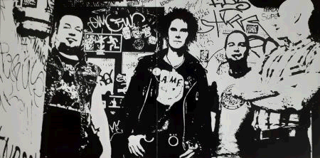 | A-puolella monivärinen kuvaetiketti, kääntöpuolella punainen etiketti mustalla ja valkoisella tekstillä. |  | Kiiltävät kuvakannet ilman ylä- ja alasaumaa, jolloin sisälle aukeaa tuplakokoinen mustavalkoinen kuva bändistä. Kuin uudet! |