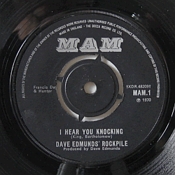 | A renowned British guitarist / vocalist, born in 1946 in Cardiff, Wales. First came to public attention as a member of Love Sculpture in 1968. His 1st solo single, featuring the number 1 UK hit "I Hear You Knocking" on side A and a blues-rock instrumental on the flipside. Credited to Dave Edmund's Rockpile. Rare Danish picture sleeve issue (the record was manufactured in UK). His 1st solo single, released in November 1970.