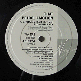 A popular Northern Irish indie rock band, formed in 1984 in Derry by John O'Neill (ex Undertones) and Raymond Goran. 10 inch 45 rpm 4-track EP: "Groove Check" (10" Mix) / "Chemicrazy" // "Tension" (live) / "Under the Sky" (live).