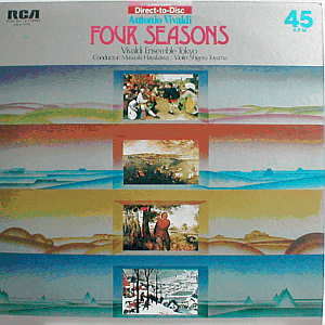 | Antonio Vivaldi's "Four Seasons", performed by Shigeru Toyama (solo violin) and the Vivaldi Ensemble Tokyo, conducted by Masaaki Hayakawa. Recorded in January 1977 at Truma City Auditorium. Rare limited edition direct-to-disc issue, released on two 12 inch 45 rpm. discs.