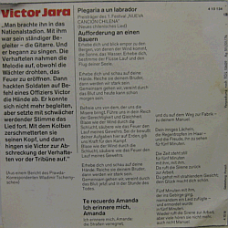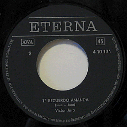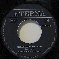 | A world-famous Chilean poet, singer-songwriter and political activist, born Victor Lidia Jara Martinez in 1932 in Lonquen. Backed on side by Quilapayśn. 1974 East German issue of Jota Jota JJS-101 (Chile 1969).