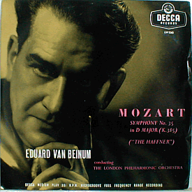 Mozart's "Symphony No. 35 D Major" ("The Haffner"). Eduard van Beinum conducting The London Philharmonic Orchestra. Mono.
