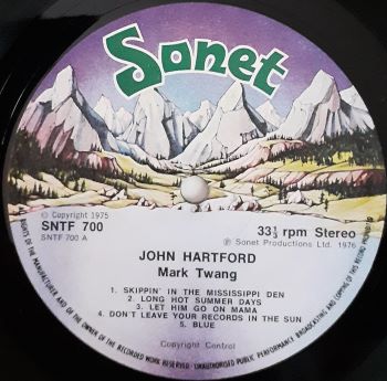 An important / influential American folk, country and bluegrass singer-songwriter and musician, born in 1937 in New York City, New York, but spent his childhood in St. Louis, Missouri. John Hartford now plays all the instruments himself. A highly experimental piece of work! UK issue of Flying Fish FF-020 (USA 1976). His 10th or so solo album.