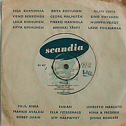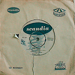 Valkoinen etiketti harmaalla 'trumpetti'-kuviolla. Ylhäällä iso sinivalkoinen Scandian ovaalilogo. Kevyitä likajälkiä ja hieman kirjoitusta (> aiemman omistajan nimikirjaimet) molemmin puolin.Levy-yhtiön paperipussi, jonka kunto ei päätä huimaa.