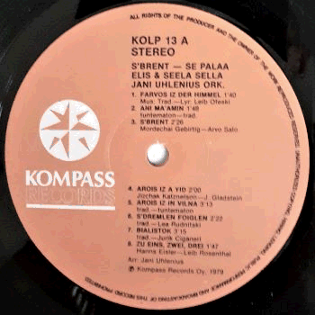 | Brown labels. White Kompass picture logo on the left. |  | Semi-glossy cover. Partial light ringwear and light surface scratches on each side. Some wear and multiple light creases along the edges. Some corner wear. On the front cover there's an acknowledgement to Sam Vanni by Seela & Elis Sella. |