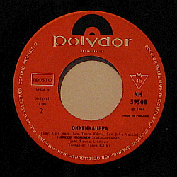 Punainen etiketti. Ylhäällä musta ja valkoinen Polydorin kuvalogo.