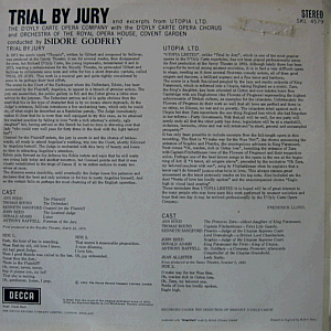 The D'Oyly Carte Opera Company performs "Trial by Justice" and excerpts from "Utopia Ltd.", both written by Gilbert and Sullivan. Recorded under the direction of Bridget D'Oyly Carte.