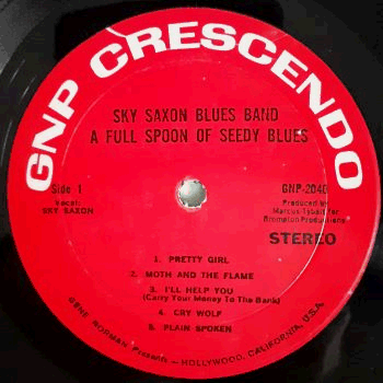 | Red labels. Curved white GNP Crescendo logo at the top. Catalogue number GNP-2040 (mono), STEREO print below. |  | Glossy single cover. Surface / partial ring wear on front (> top & bottom > middle). A few light dirt marks on back. Wear along the edges. Some corner wear, one of the corners (> right > bottom) being also creased / bent. Two small cut-out holes. White STEREO text and black GNP-2040 (> mono) catalogue number on front, only black GNP-2040 on back. |