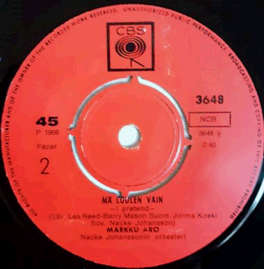 | Mouhijärvellä vuonna 1950 Markku Tuomas Puputtina syntynyt suomalaisen iskelmätaivaan kiintotähti. Kaksi coveria, Juha Vainion (A) ja Jorma Kosken (B) suomennoksina. Taustoista vastaa Nacke Johanssonin orkesteri. Aron esikoissinkku!