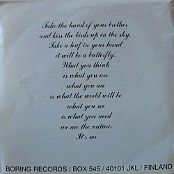 Jälkipunkpohjalta operoinut jyväskyläläiseltä voimatrio, vieläpä vallan asiallinen sellainen. Viiden englanninkielisen biisin EP-levy, järjestyksessä toinen (myös viimeiseksi jäänyt) sellainen.