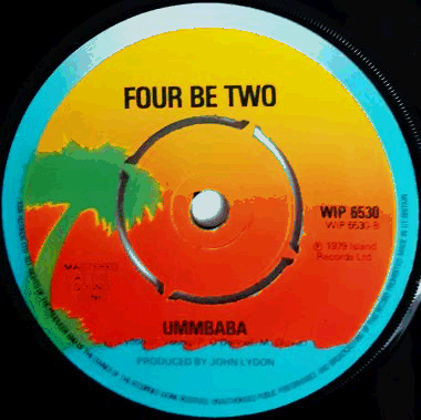 | Yellow, orange and green 'palm tree island' labels with sea blue rim. The name of the band reads here Four Be Two. |  | Top-opening glossy flipback picture sleeve. A few small edge tears on front (> top > middle). Light creases on each side. Partially split (> 6 cm > middle) bottom seam. Wear and light creases along the edges. A bit worn / creased corners, one of them (< bottom > left) being also bent. |